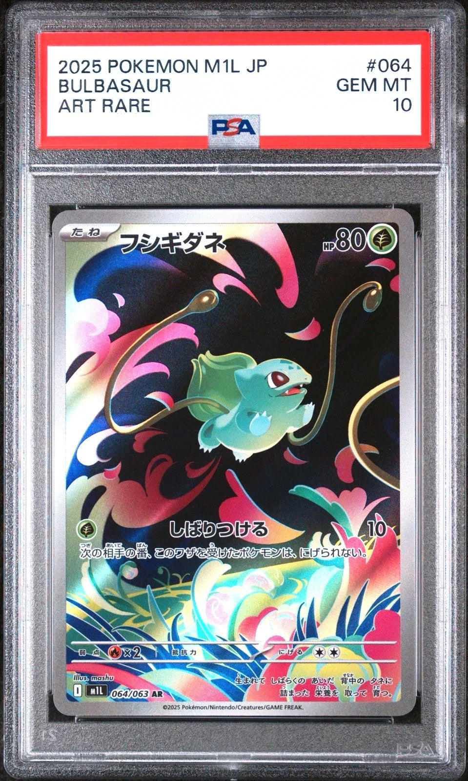 Graded PSA 10 Gem Mint, this card is in flawless collector condition, with pristine surfaces, razor-sharp corners, and perfect centering. As part of the Mega Brave (メガブレイブ) set — a companion to Mega Symphonia — this card represents one of the early stages of the Mega Evolution series, making it an essential piece for set builders and collectors alike.