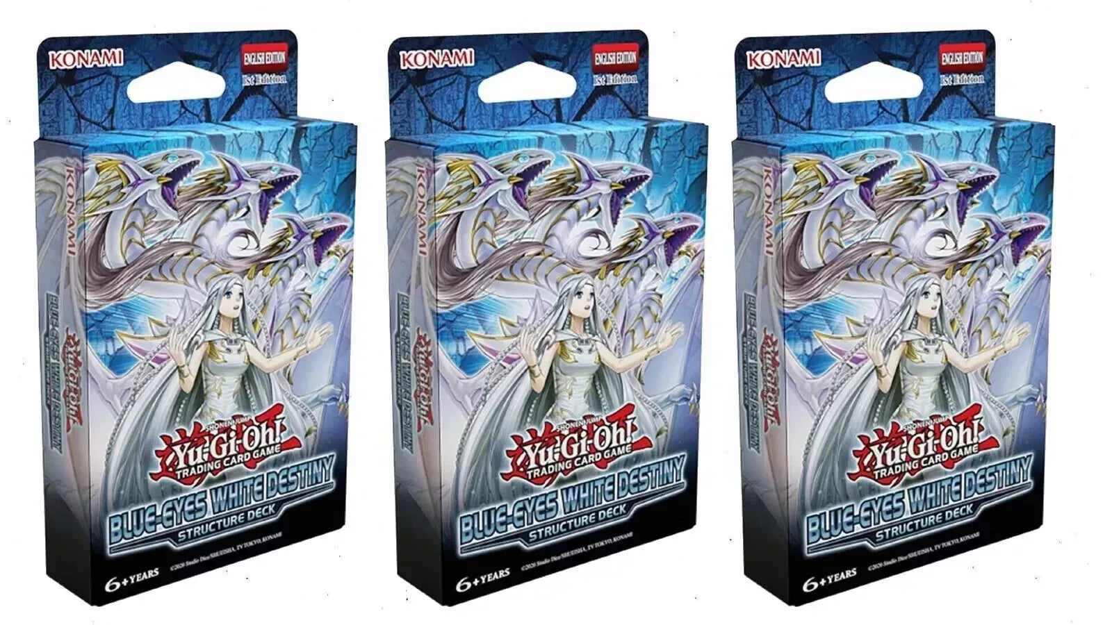 Blue-Eyes White Destiny Structure Deck (3x Bundle) gives duelists a ready-to-play Blue-Eyes deck straight out of the box, featuring support cards for Blue-Eyes White Dragon, Azure-Eyes Silver Dragon, Blue-Eyes Jet Dragon, and classic high-power combos.