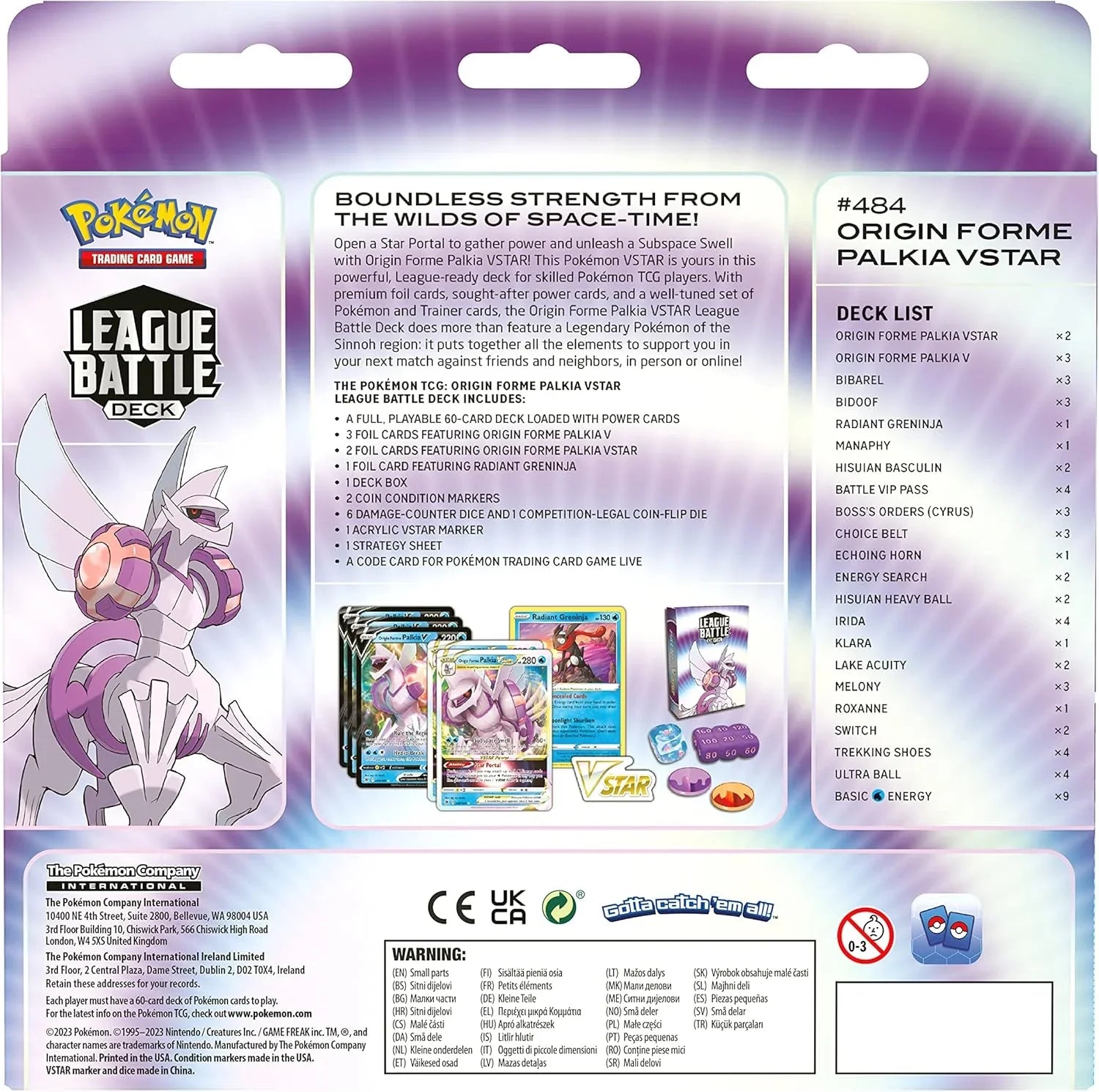 - 1 × Ready-to-play 60-card deck featuring Origin Forme Palkia VSTAR